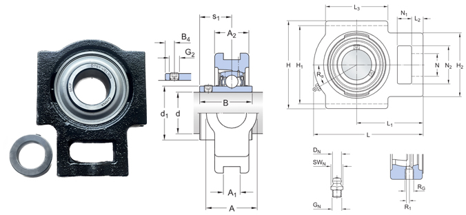 滑块式球黄色蘑菇视频单元包含一个安装在灰铸铁黄色蘑菇视频座内,基于密封深沟球黄色蘑菇视频的嵌入式黄色蘑菇视频。 它们通常安装在调紧框架内,内圈两侧加长,通过拧紧内圈上的(紧定)螺钉锁定,便于安装。
